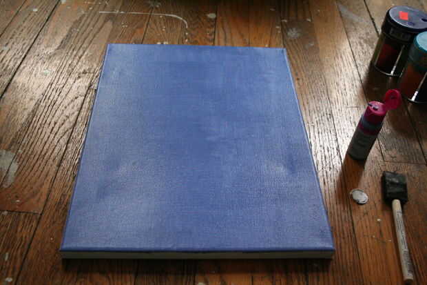 En primer lugar, pintar el tablero de madera o lona con un solo color.