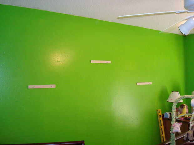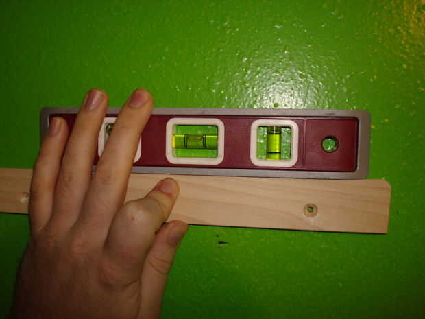 nivel torpedo, presione con el otro soporte a la pared donde te gustaría montar.  Taladro a través de los orificios avellanados y en el yeso.  Esto va a marcar donde tienes que poner tus anclajes.  Para proyectos especialmente pesados, considere colocar los soportes sobre un poste.  Incluso un tornillo en un poste y otro en un yeso ancla puede sostener mucho peso.