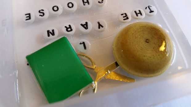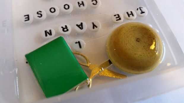 En cuanto a otras pequeñas cosas para agregar, aprendí la manera dura que es realmente mejor si puedes usar plástico o metal u otros materiales densos. El tazón de fuente del hilado y el pequeño libro utilizaba fueron hechas de madera y mantenido tratando de flotar a la superficie de la resina! Terminé teniendo que hacer varias capas delgadas de resina, dejando que cada capa solidifique antes de hacer otro, con el fin de llegar a quedarse abajo! ¡ Qué dolor! Las pequeñas tijeras, por el contrario, funcionadas muy bien!