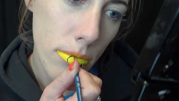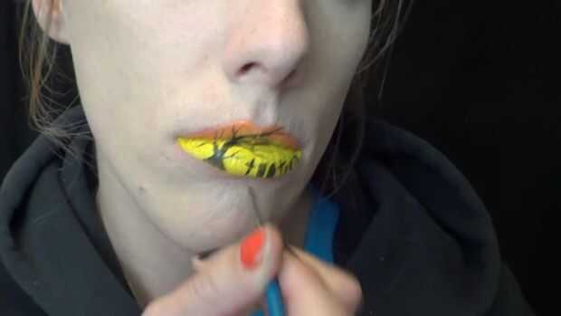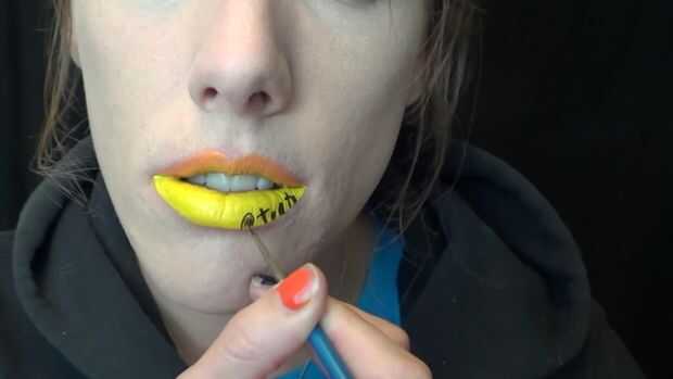 dio arte labio otra oportunidad!Paso 1: la luna Conseguir amarillo puesto que en un lado de mi labio en la parte superior e inferior en un círculo. TIS de luna.Paso 2: cielo de la noche Entonces conseguir negro pongo en cualquier otro lugar.Paso 3: t