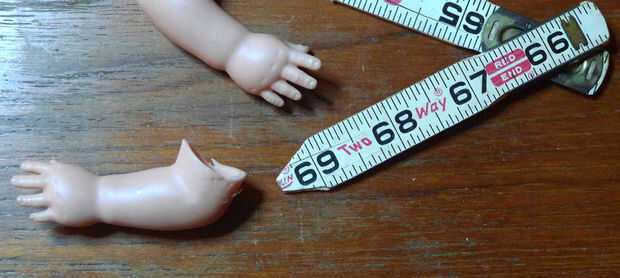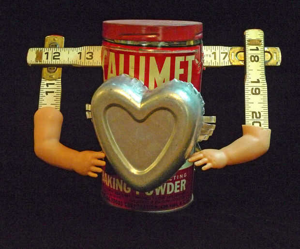 he utilizado algunas reglas plegables y manos de muñeca para los brazos, estaban en proporción a la lata había elegido para ser el cuerpo. Tenía las manos el corazón y ver donde tienen que colocarse para poder hacer eso, entonces corte que el cuerpo puede por consiguiente.