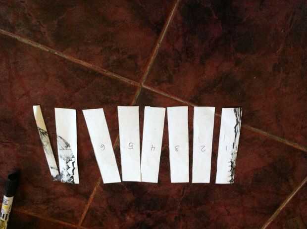 Ahora tienes paneles en sus obras ahora número desde el principio de la le cuando termines numeración de los dos, cortar siguiendo las líneas hechas con la regla de no mezcla los papeles o puede confundirse