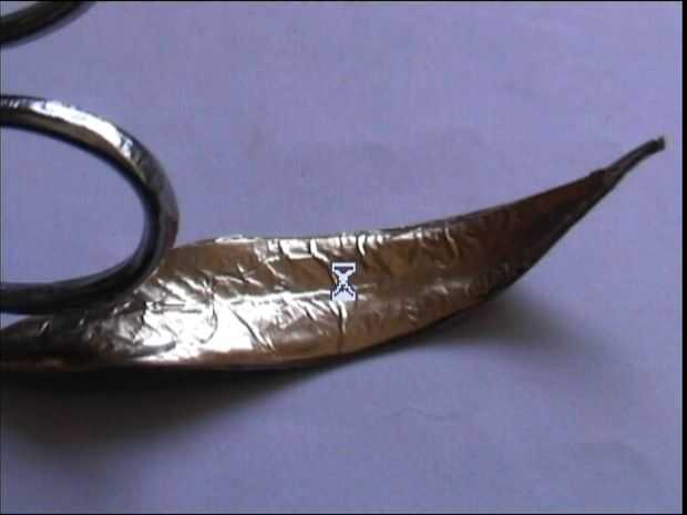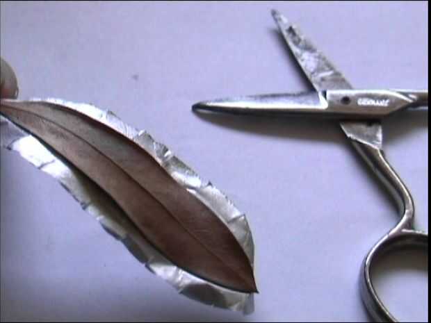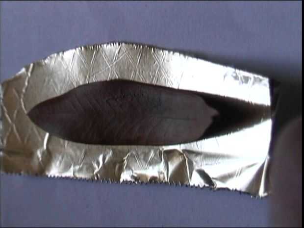 Ahora cuidadosamente bruñido en ambas caras del objeto encontrado. Use un cepillo de dientes para presionar la lámina de cinta adhesiva en cualquier ranuras.