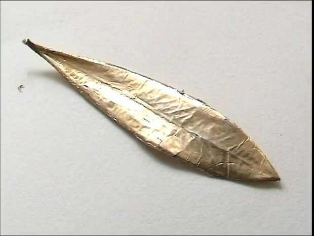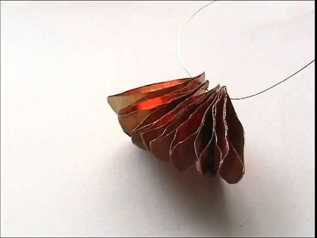 Estaba inspirada en la artesanía origami y decidió sobre el uso de papel de seda cubierto con cintas adhesivas doblados en forma de mariposa de metal.