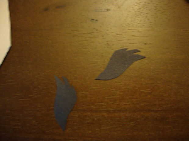 Ahora tome un pedazo de papel de construcción naranja. Doblar por la mitad y corte el proyecto de ley. (Puede usar otro color si usted elige)