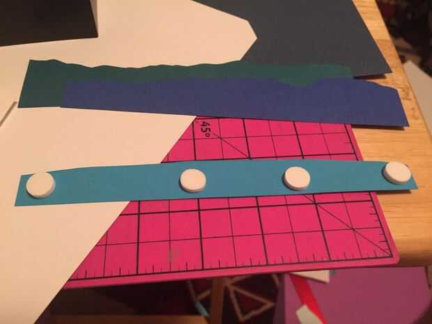 Paso 5: Aplicar los círculos de espuma adhesiva a las formas colores y montar las capas.