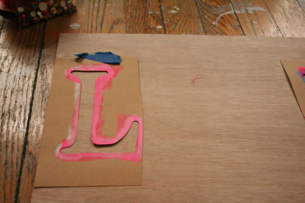 Utilice las plantillas de carta para que la palabra "Amor" a través de la madera contrachapada.