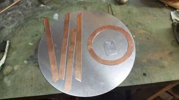 Una vez que todas las piezas se cortan a la forma, utilice papel de lijadora y arena para suavizar cualquier borde filoso. También desea la cara superior para hacer un acabado uniforme limpio de arena. Ahora es el momento de añadir cualquier pátina a tus piezas. Para aluminio, usar un producto comercial llamado "Aluminio negro" y de latón y cobre uso solución de pavonado de armas. Trate de conseguir un acabado uniforme sin dejar cualquier las huellas dactilares. Si hay alguna mancha de mal, no te preocupes demasiado que se ser quitar la mayoría de los acabados más adelante.