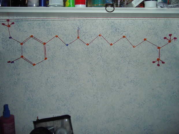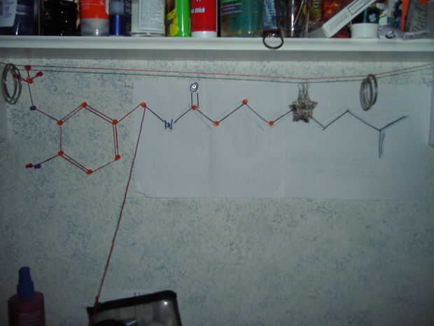 Para empezar, envolver alguna cadena alrededor del eje del metal puntiagudo de la chincheta de inicial/primaria (pero no en el mango). Entonces empujando este pin en el muro todo el camino se convertirá en su pin de ancla. Continuar jugando conectar los puntos con la cadena y pernos. Luego el anclaje de la misma manera como la primera.