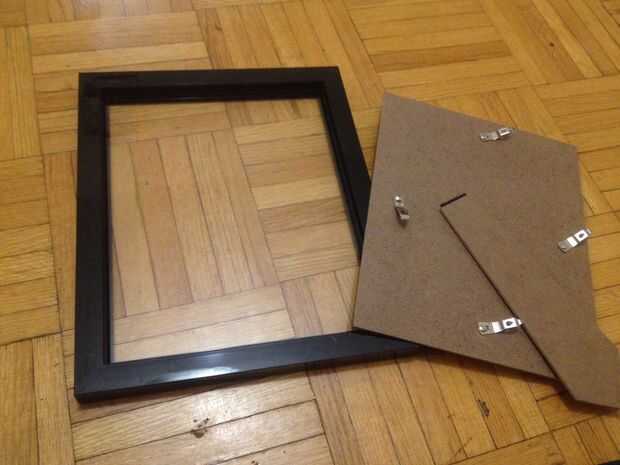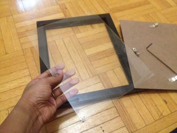 Sacar con cuidado el marco de cristal y coloque la hoja de patrón en posición correcta y Chelo la cinta en cuatro esquinas de la hoja.