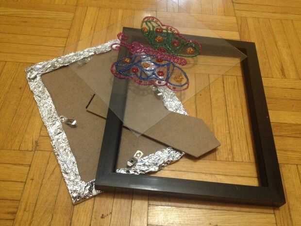 Luego coloque un cartón en él y bloquear el marco por todos lados.