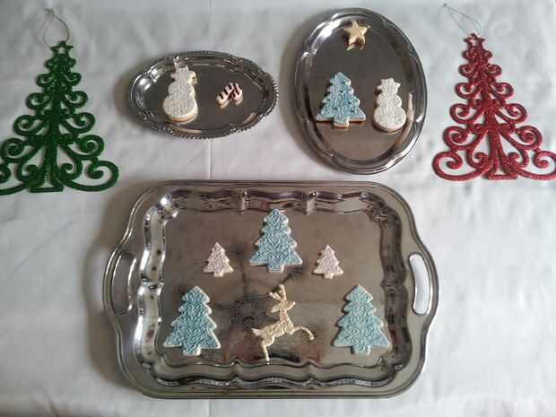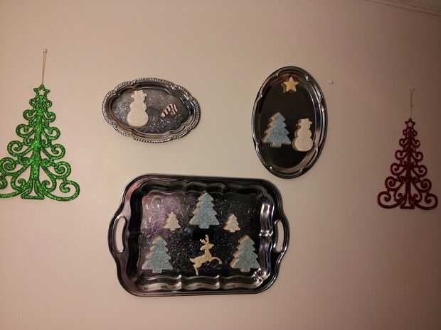 Hice este arte de la pared de galletas a unos fines. En primer lugar sirve como una bonita decoración para mi intercambio de galletas de vacaciones. En segundo lugar, los invitados a la fiesta se les permitiera tomar una galleta directamente de las paredes para tomar como favor de partido y tercera hecho en casa más bandejas completo para dar a los familiares como regalos.