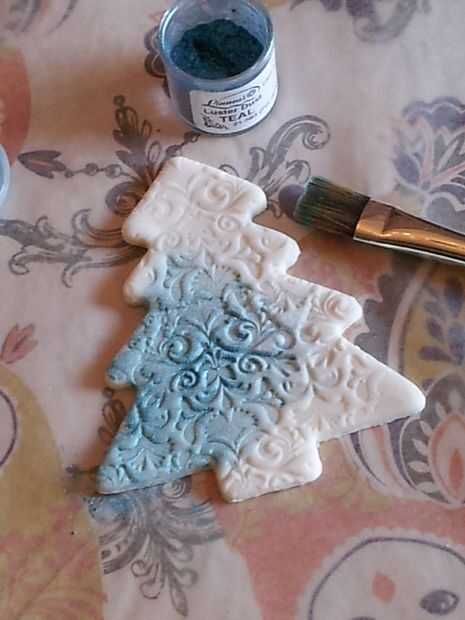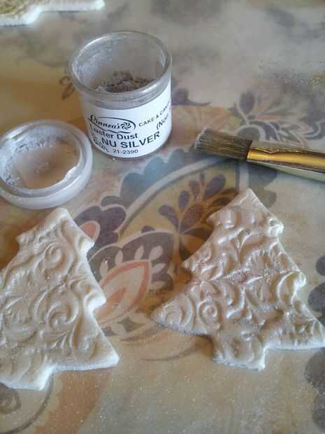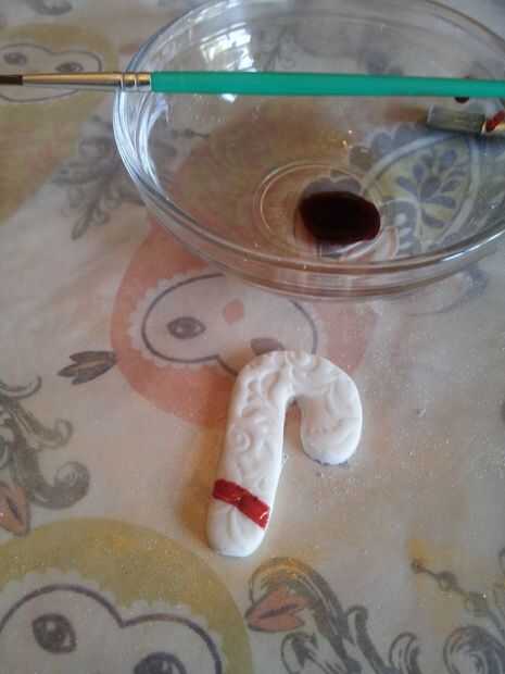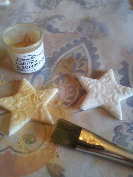Tomar su polvo brillo y suavemente polvo lo en con su pincel segura de alimentos hasta que estés satisfecho con el color. Yo generalmente sumergir el cepillo y luego pulse suavemente la tapa para sacar un poco de powder.repeat exceso esto con todos los colores y formas que usted quiere hacer. También decidió pintar algunas rayas en los bastones de caramelo comestible aerógrafo pintura.