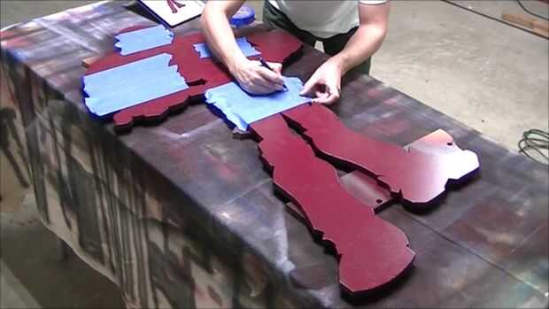 Después que enmascarados fuera de las áreas que serían pintado oro. Luego coloca la plantilla sobre la cinta y trazó el contorno de las áreas de oro con un bolígrafo aplicando una ligera presión constante. Seguimiento de la plantilla deja una impresión en la cinta que se puede utilizar para volver a repasar con el bolígrafo. También ayuda a tener una foto de referencia para asegurarse de que están rastreando donde usted necesita seguimiento.