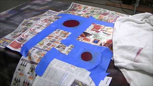 Entonces la máscara fuera de los alrededores y rocíe la pintura blanca.