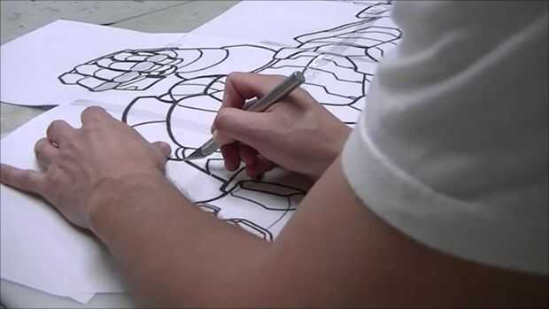 A continuación cortar la plantilla utilizando una hoja de afeitar. Asegúrese de que proteger la superficie debajo de cuando se utiliza la maquinilla de afeitar.