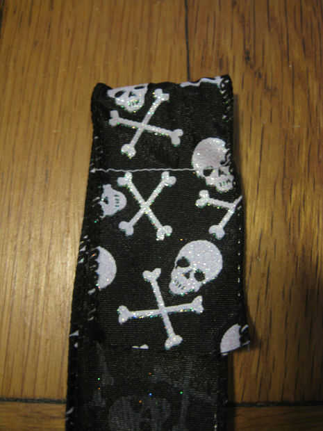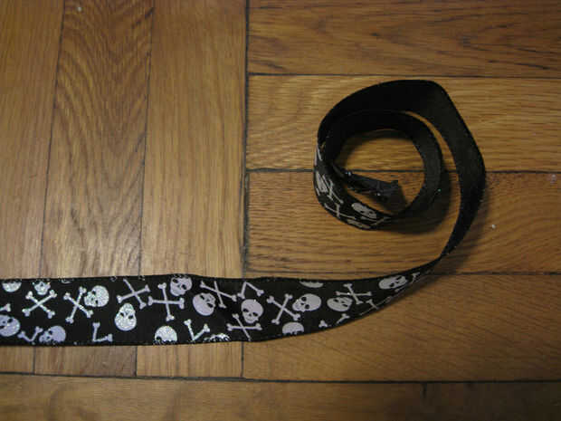 Mano de coser, puntada de la máquina, grapa cerrado o una línea para sellar la cinta del pegamento. En estas fotos, máquina coser la cinta de cráneo y sujetado con grapa la tira de cuero del faux.