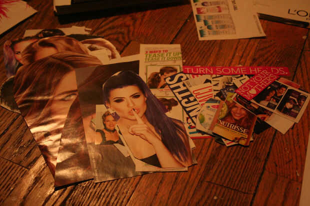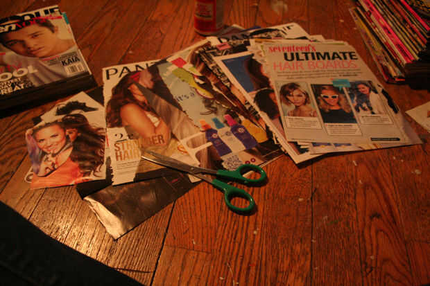 Mirar a través de sus revistas viejas y use sus tijeras o un cuchillo x-acto para cortar imágenes y palabras que están relacionados con el cabello. Luego, organizar las piezas en un montón, que luego utilizará para hacer un collage de fotos!
