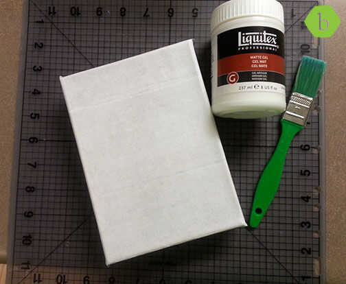 Extender una capa gruesa incluso y decentemente de Liquitex sobre su lienzo, y cuidadosamente se adhiere el papel impreso a él. Con los dedos o con la ayuda de una tarjeta de crédito, se separó el papel hacia fuera plana quede sin arrugas. Puede tomar un poco de trabajo pero trate de no rasgar el papel en absoluto.