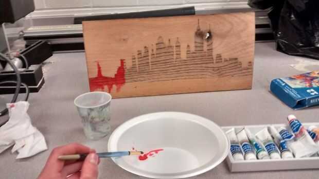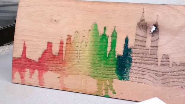 -Es útil en el pigmento de la pintura mientras que la Junta se establece y apoyarse para arriba en algo para poner el agua para que la pintura gotee