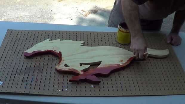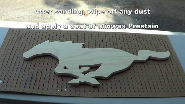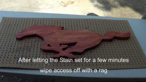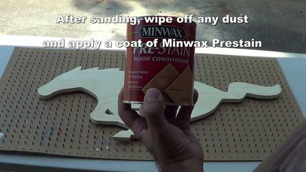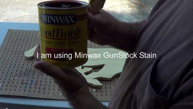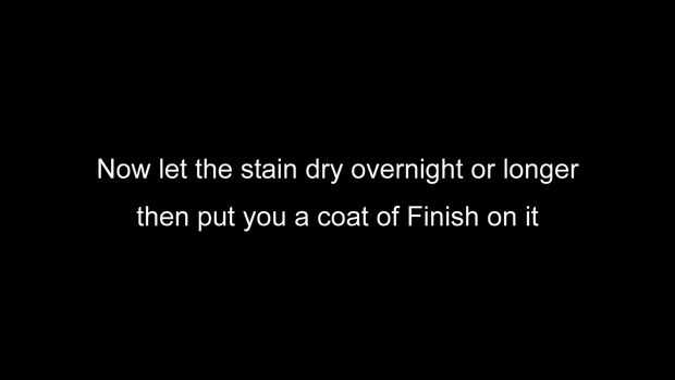 Limpie el polvo y aplicar una capa de acondicionador madera Minwax. Dejar actuar unos minutos, el acondicionador de madera, lea las instrucciones de recommened. Luego aplique el colorante apropiadamente, usar manchas Minwax Gunstock, utilizo 2 manos, limpiar entre capas.