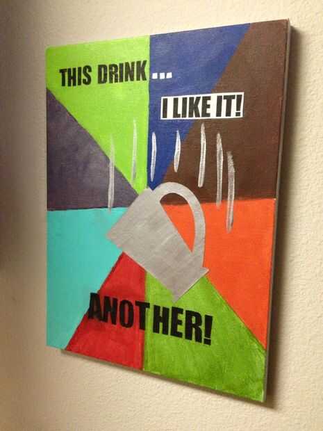 Creo que uno de mis memes favoritos y una de mis líneas favoritas de cualquier película, son el "esta bebida... ¡Me gusta! ¡ Otro!"inspirada en una línea de Thor. Quería algunas ilustraciones para colgar encima de mi estación de café en mi pequeño apartamento, así que creé una obra de arte que combinaba el meme y la línea original. Tiene el fondo de colores brillantes del meme y una referencia al café, que es mi bebida favorita, y una referencia a Thor, que es mi película favorita de Marvel. Bueno... uno de mis favoritos. :)