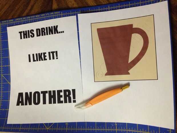 - las palabras "esta bebida... ¡Me gusta! ¡ Otro!"a imprimir en grande, san-serif, negrita en el papel de ordenador