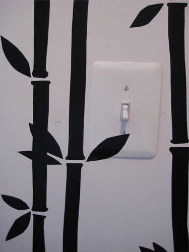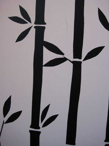 Es un hombre de idea, pero no para la implementación, por lo fue a mí. Me fui a trabajar corte hueso-formas de las siluetas de bambú y óvalos puntiagudos para las formas de la hoja. La clave es trabajar como si estás haciendo una ilustración bicolor con estas cosas y no se atascan en fotorealismo. Puede ayudar a ver las ilustraciones de cosas que estás pensando hacer, para ver cómo otros artistas han destilado las formas básicas.