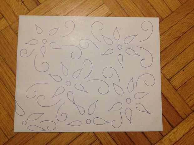Toma una hoja, que se adapta bien en el marco. Ahora dibujar algún patrón en la hoja como su deseo. Puesto que su mi primer intento, dibujé el patrón de flor simple.