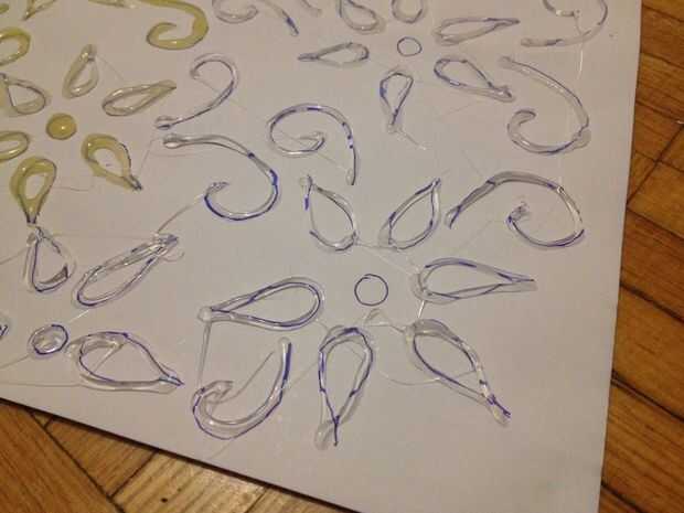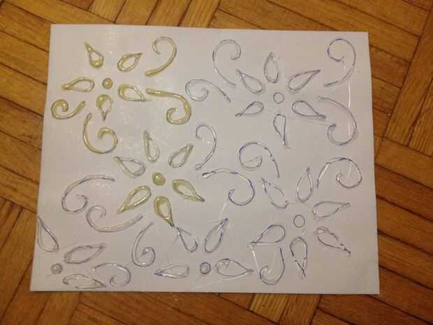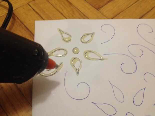 Ahora traza el patrón con la pistola de pegamento caliente. Una vez que usted trazó todas las curvas y líneas, dejarlo completamente seco para en algún momento (se tardan 2 minutos para secar).