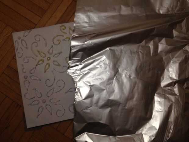 Mantener el patrón pegado sobre la parte posterior del marco. Ahora Envuelva la lámina sobre el frente y hacia atrás.