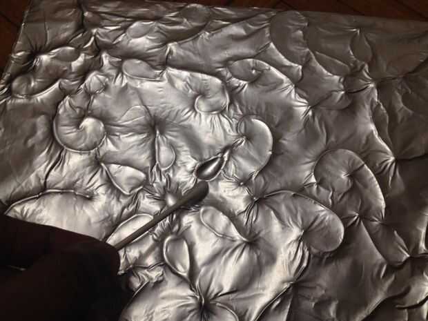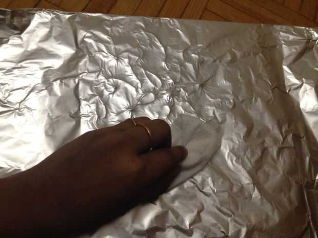 Ahora presione la lámina con los dedos y luego usar q-tips para frotar la lámina hacia abajo alrededor de las líneas de pegamento sin romper la hoja.