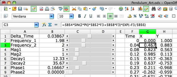 Arte de péndulo en una hoja de cálculo. (4 / 7 paso)