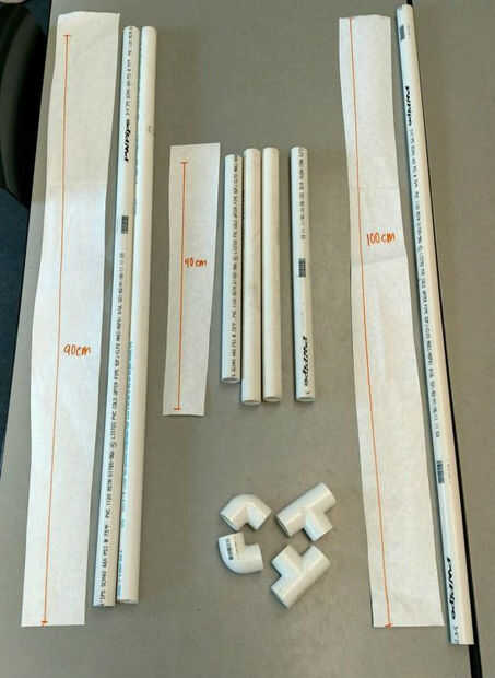 1. Con cortatubos o una sierra de corte 2 piezas de tubo a 90 centímetros.