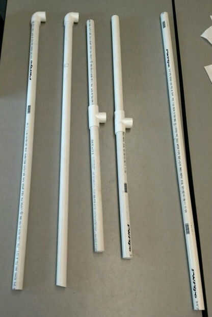 1. Conecte los codos a cada uno de los tubos de 90 centímetros de largo.