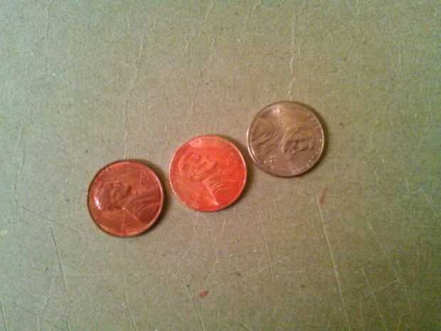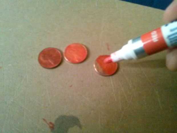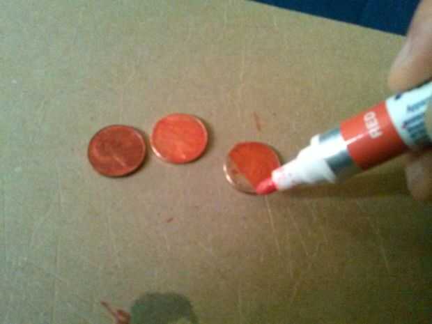 Paso 4: utilicé un marcador rojo y aquí están las fotos y algunas comparaciones de monedas normales y rojo.