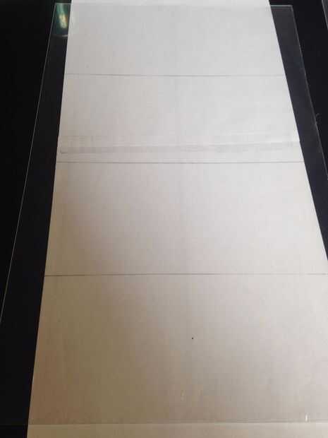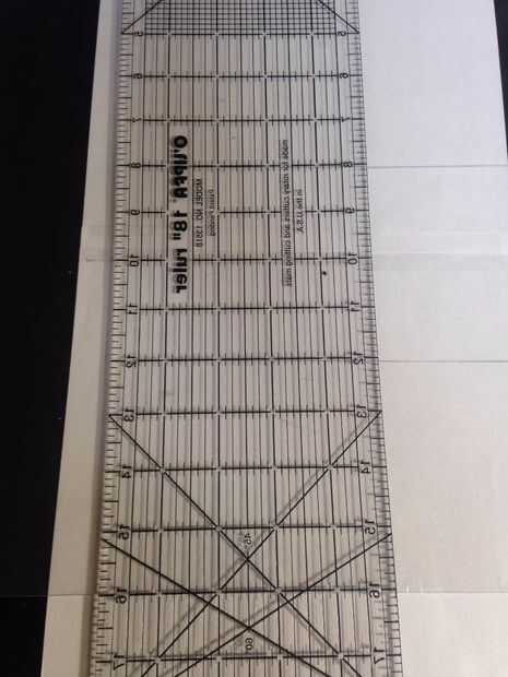 Después de que usted sabe cuánto y cómo muchas piezas, con la película de plástico, comienza la medición de sus cortes. Para hacerlo más fácil ver marcas de lápiz/pluma en la cubierta de plástico, puse el papel debajo del plexiglás. Utilicé una regla para ayudar a mantener mi puntuación marcas rectas.