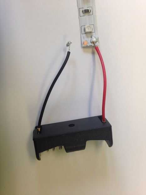 Hice lo mismo con el portapilas que ordené. El cable negro (negativo) está conectado al LED en el lado negativo y se conectan los cables rojo (positivo) a los lados positivos.