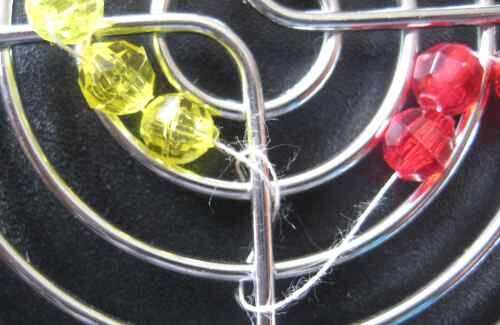 Sólo poner un grano en y compruebe que se sienta bien. Como veis que he tomado el hilo alrededor de una barra está en el exterior de la fila donde se van los granos.
