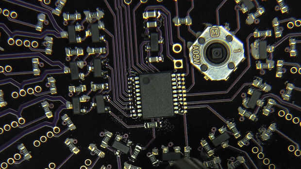 Después de que el PCB se haya enfriado lo suficiente como para tocar, es hora de inspección. Llevo una visera lupa para examinar todos los detalles. A menos que usted es super bueno (o tal vez no soy lo suficientemente bueno), habrá algunas cosas que arreglar. SSOP (PIC24F) las patas son juntas, así que compruebe cuidadosamente para el puente de. Siempre tengo que utilizar soldadura les mecha al puente de las Naciones Unidas.)