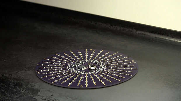 Tan pronto como usted puede ver la soldadura pasta derretida, vuelta de la placa. Algunas personas mantienen el PCB en la placa se enfríe, pero me pongo demasiado nervioso por lo que me Quito. Sin embargo cuidado de no enfriar demasiado rápido el PCB. (No lo coloque sobre una superficie fría.) Usar tweeters para manejar el PCB por supuesto.
