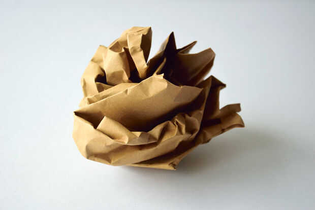 Tomar el trozo de papel liso, plano marrón agradable y atornillar para arriba en una bola.