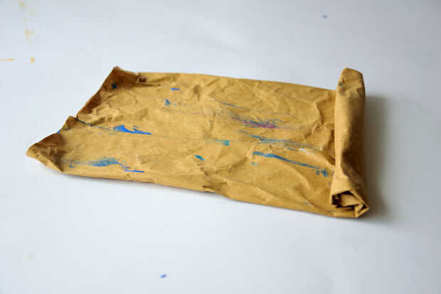 Luego doblar los lados del papel hacia el centro y enrollar desde un extremo. Esto es muy sucio. ¡Me encanta! No use su mejor vestido para ello.