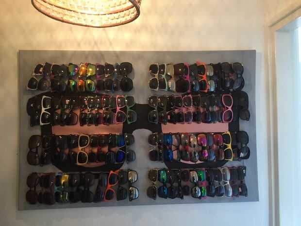 tengo un problema - comprar gafas de sol de muchos. Todo barato, todas indispensables. Se fueron convirtiendo en una enorme pila y una molestia enorme.Impresora 3D al rescate.Tengo un rack de estantes que tiene un lado que es útil para el acceso y no