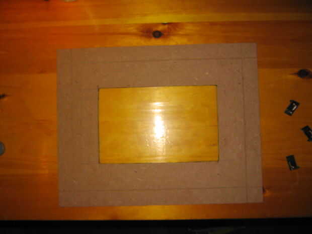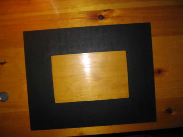 Acabo de comprar un marco barato de Wal-mart. Creo que pagué alrededor de $2 para él. Marque un rectángulo en la parte posterior de madera mediante la medición en por todos lados una cantidad igual. Lo puede hacer cualquier tamaño que desee. Recortar el rectángulo con una sierra de calar o lo que sea obras que tienes en la mano. Mina pintadas negro pero cualquier color que vaya con su decoración es fresca.