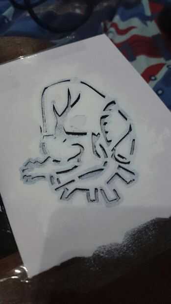 su pintura hacia fuera y una pequeña cantidad en la esponja. Frote suavemente sobre la plantilla. Recuerde dab y no limpie. Esto ayudará a mantener la pintura en la galería de símbolos y darle una mirada aseada general.