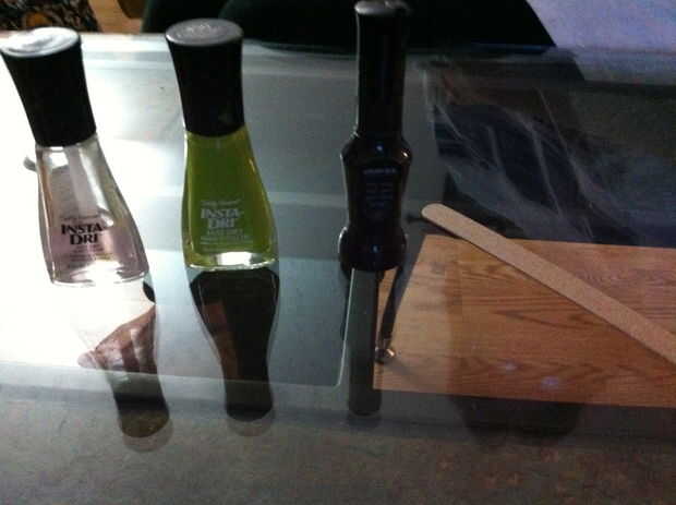 en este instructable, le mostraré cómo hacer arte de uñas simple que es super lindoPaso 1: fuentes de 1) rojo polaco polaco 2) azul 3) amarillo Polaco 4) la mitad de una horquilla o punteado herramienta 5) brillante esmalte transparente (opcional) cl