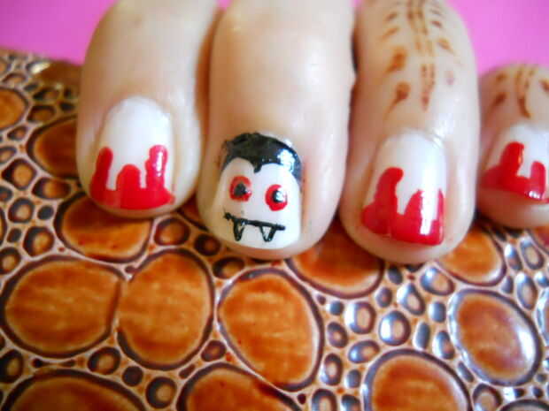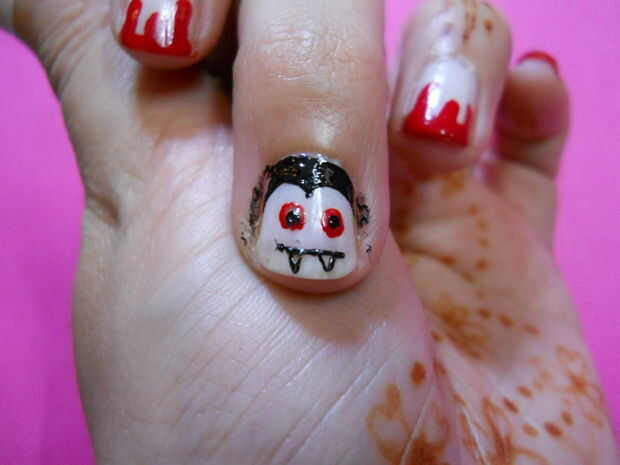 mientras navega por la red he visto varias artes de uñas... quedé fascinado por el arte de uñas con temas de Drácula... he intentado esto y compartir con ustedes.