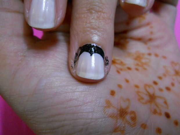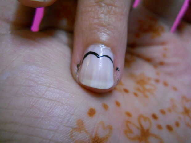 entonces usando simple pin/punteado herramienta relleno en pintura de uñas negro para crear su pelo