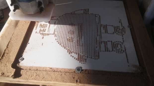 Como arte se llevó a cabo en un router CNC, utiliza un cortador de grabado de 45 grados y 0,2 mm de profundidad. En este caso, cuando más agudo el ángulo, mejor que mejor, porque las líneas son más delicadas, y usted puede incluso tratar de profundidad un poco más grande.